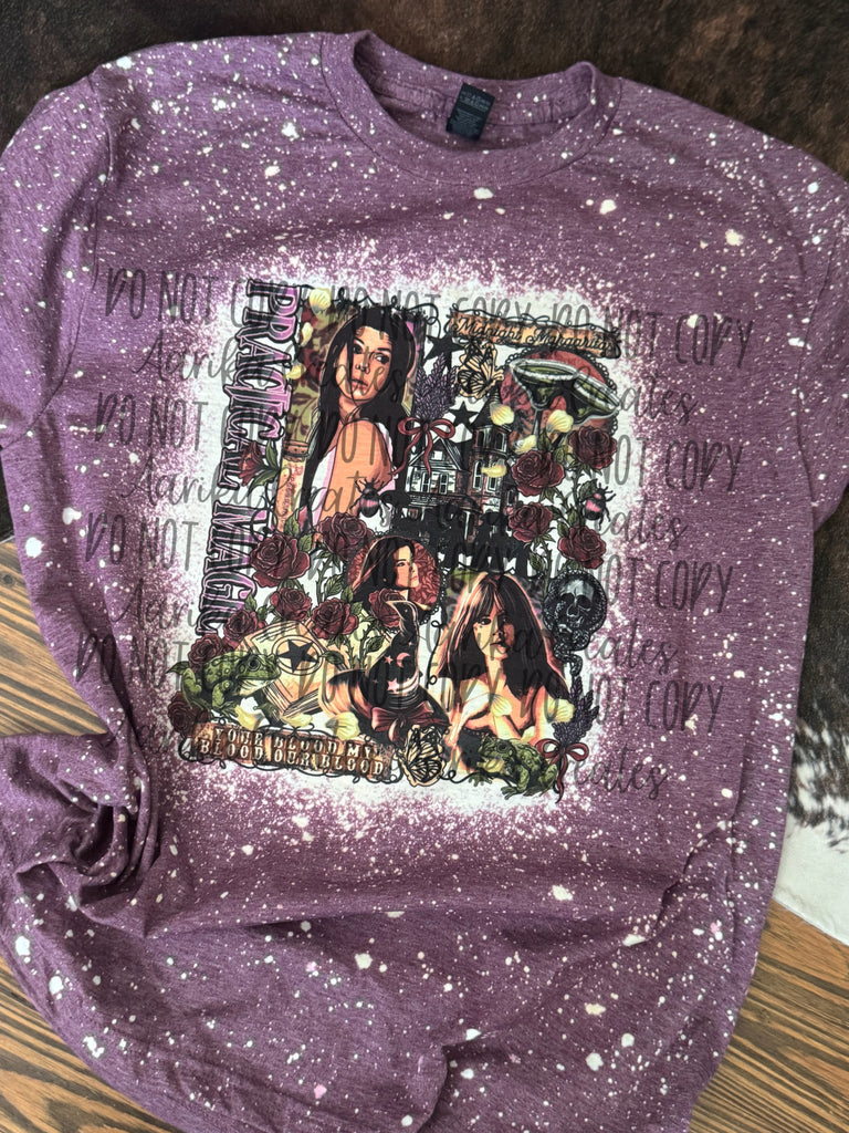 65/35 cotton poly blend tee very soft and comfortable! Traditional bleach spot with splatter