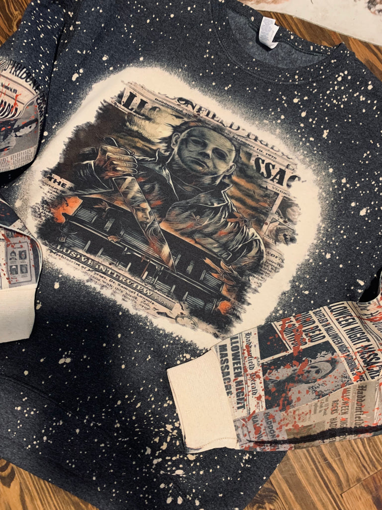 50/50 cotton poly blend crew neck sweatshirt with classic bleach on the front and bleached accented sleeves!